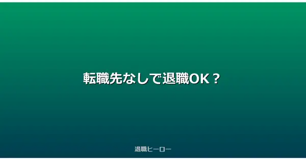 「転職先が決まってないのに辞めるのってヤバい?」って不安になってない?実は先に辞めてうまくいった人、結構いるんだよ。転職活動は在職中にするのがセオリーと言われてるけど、現実はそう簡単じゃない。毎日残業で転職活動の時間が取れない、精神的に... -