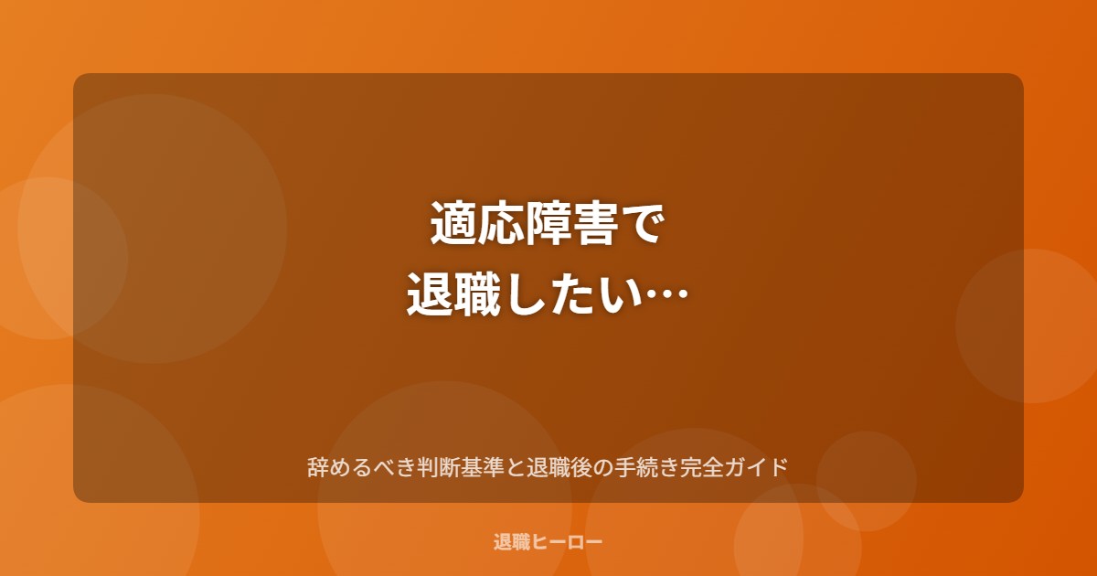 「適応障害と診断されたけど、退職していいのかわからない」「辞めたいけど、辞めた後の生活が不安」——そんな悩みを抱えていませんか?